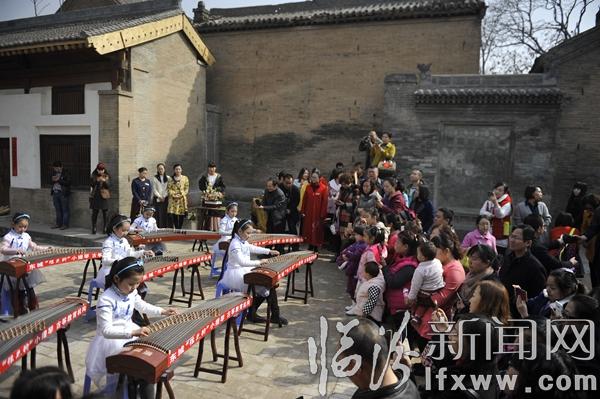 之后是“弦之韻”的少年班帶來的古箏表演,輕柔而典雅的旋律,華麗而委婉的音符,演奏出優美動聽的《茉莉花》和《北京的金山上》,看著孩子們認真彈奏的模樣,一旁帶隊的校長張紅梅激動不已,“沒想到7、8歲的孩子們現場發揮這么好,今天的活動不僅讓孩子們得到了鍛煉,還學習了傳統文化,以后要多多參與這樣的活動。”活動最后是自由品茶時間,茶藝師與游客們也在品茶過程中暢快交流。帶著妻子來游覽丁村的柴志杰說:“很幸運能參與這樣的活動,之前對茶文化不了解,只知道茶要用開水泡,沒想到泡茶還有這么多的程序,今天可是長見識了。”