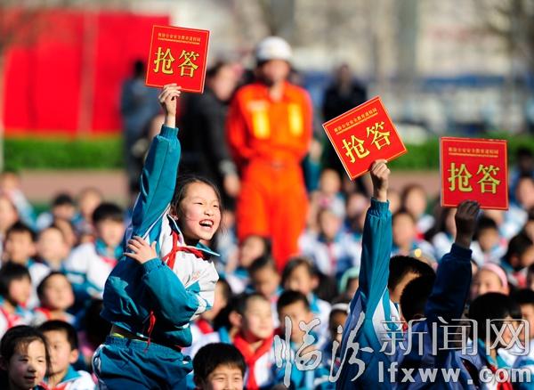 臨汾新聞網訊 2016年3月31日,在山西省襄汾縣第三小學,小學生進行消防安全知識搶答。