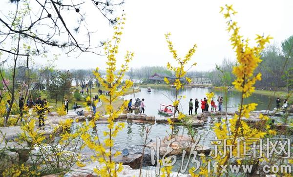 臨汾新聞網訊 近日,市區澇洰河生態公園內,桃花、柳樹和郁郁蔥蔥的草地、五顏六色的鮮花、波光粼粼的湖面,構成了一幅美麗的春日畫卷,吸引了眾多市民們游玩踏青。