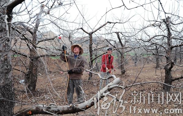 臨汾新聞網訊 日前,在翼城縣南唐鄉東唐村,村民肖培良正在給蘋果樹打藥。
