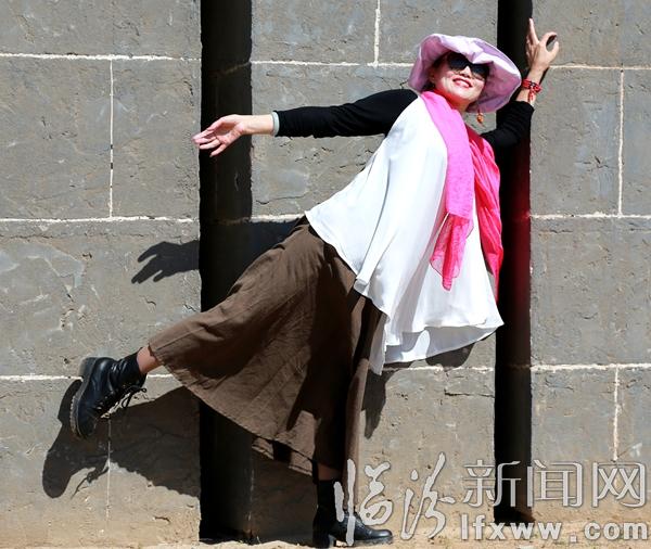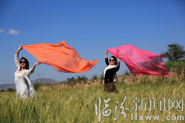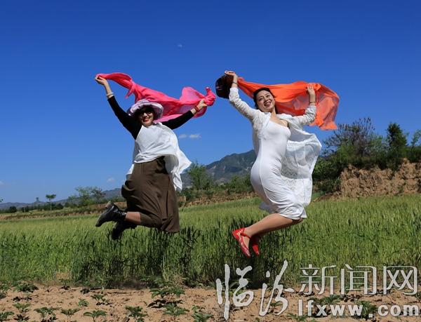 5月15日,臨汾市旗袍協會模特兒隊參觀完陶寺觀象臺后,走進附近的田間地頭,激情跳躍秀青春。