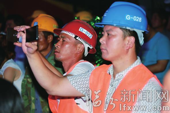 臨汾新聞網訊 舞姿翩躚、歌聲悠揚、鼓樂鏗鏘。7月8日晚,濱河西路立交橋建筑工地上歡歌笑語,熱鬧非凡。臨汾市總工會“慰問市重點工程中建交通施工一線職工”文藝晚會在這里舉行,來自臨汾市音樂藝術聯誼會、臨汾市職工語言藝術聯誼會的會員們,帶著對勞動者的崇敬之情,將精心準備的節目奉獻給頂著酷暑、忘我工作的一線職工,歌曲、舞蹈、朗誦、小品,精彩的節目,贏得現場觀眾掌聲陣陣、喝彩連連,將現場氣氛一次又一次推向高潮。圖為演出現場。(盧婷 張漢橋)