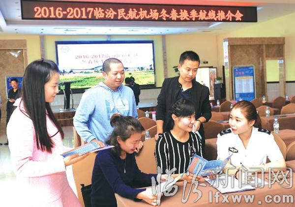 臨汾新聞網(wǎng)訊 10月17日,在臨汾民航機場冬春換季航線推介會上,來自旅游行業(yè)的代表在和工作人員交流旅游線路。目前,臨汾民航機場通過航線優(yōu)化調(diào)整、旅游線路促銷及政策優(yōu)惠等方式,已吸引眾多游客走進(jìn)大美臨汾,感受這里悠久的歷史和燦爛的文化。記者 閆銳鵬 攝