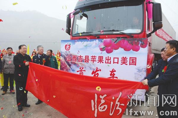 臨汾新聞網(wǎng)訊 1月6日,吉縣蘋果出口美國(guó)首發(fā)儀式在山西澳坤農(nóng)業(yè)科技有限公司舉行。據(jù)了解,首批44噸吉縣蘋果于當(dāng)天順利啟航運(yùn)往美國(guó)紐約。