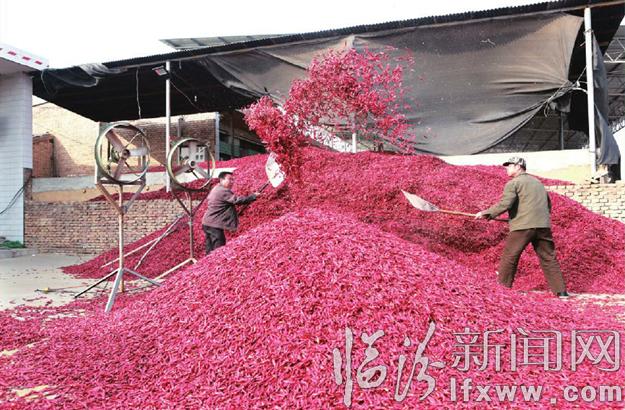 臨汾新聞網(wǎng)訊 近日,在襄汾縣趙康鎮(zhèn)趙雄村,辣椒收購(gòu)商趙寶柱借著晴好天氣,將儲(chǔ)存的1000余噸辣椒集中晾曬、分裝,準(zhǔn)備銷(xiāo)往云南、貴州、四川等西南省份。