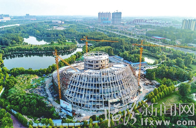 臨汾新聞網訊 9月5日,航拍鏡頭下的臨汾市圖書館建設工地已初具規模,建設工人在緊張施工。