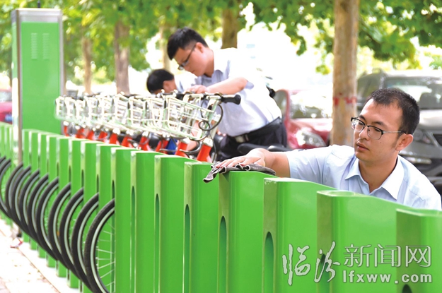臨汾新聞網(wǎng)訊 9月14日,在市區(qū)解放東路,交通銀行臨汾東城支行的青年志愿者在擦洗公共自行車。連日來,該行開展了“清洗公共自行車,爭做文明交行人”志愿服務活動,對轄區(qū)附近的公共自行車進行了清洗,并號召市民進一步珍惜公共資源,愛護公共設施,從身邊事、力所能及的事情做起,用實際行動向社會注入正能量。