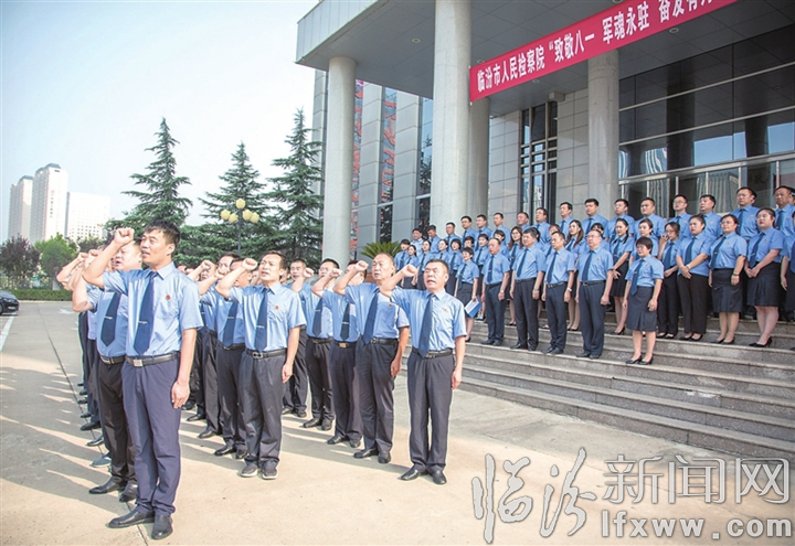 臨汾新聞網訊 7月29日,在市人民檢察院,退役軍人代表正重溫入伍誓詞。當日,市人民檢察院開展了“致敬八一 軍魂永駐 奮發有為正當時”主題活動,全院退役軍人和干警通過升國旗、重溫入黨誓詞和入伍誓詞、觀看紅色影片以及合唱《歌唱祖國》的形式,激勵全院干部職工不忘初心,立足崗位,以務實拼搏的精神投入工作中。