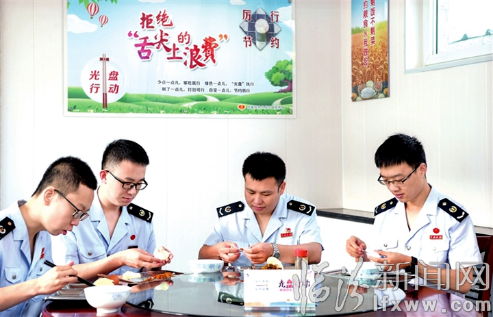 臨汾新聞網訊 8月25日,在國家稅務總局古縣稅務局職工餐廳,干部職工在用餐盤就餐。連日來,該局開展了“文明餐桌、從我做起”主題活動,將傳承傳統美德、勤儉節約、文明用餐、科學飲食四個方面內容納入《機關食堂管理制度》,實行按需采購、合理搭配、文明就餐,讓“光盤”漸成文明新風尚。