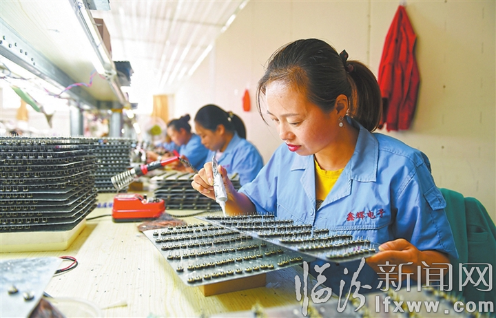 臨汾新聞網(wǎng)訊 9月10日,大寧縣鑫輝電子元件制造有限公司生產(chǎn)車間內(nèi),工人們正在加緊生產(chǎn)。該公司采取“生產(chǎn)線下鄉(xiāng)扶貧”模式,分別在大寧縣徐家垛鄉(xiāng)南桑峨村、三多鄉(xiāng)劉家莊村以及曲峨鎮(zhèn)曲峨村建成并投產(chǎn)了3條扶貧生產(chǎn)線,提供就業(yè)崗位800個,有效促進(jìn)了大寧經(jīng)濟(jì)發(fā)展。