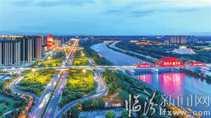 臨汾新聞網訊 7月28日,夜色下的臨汾市汾河文化生態景區流光溢彩,格外迷人。夜幕降臨,該景區東西沿岸的光帶交相輝映,展現出一幅色彩斑斕的立體美景。