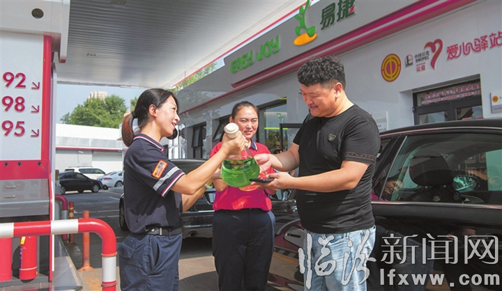 臨汾新聞網訊 8月8日,在中石化臨汾石油分公司堯都區汾濱加能站,工作人員在給客戶講解汽油性能。該公司的優質服務得到客戶認可,為了回饋市民,在當天啟動愛跑燃動節,推出一系列營銷惠民活動。