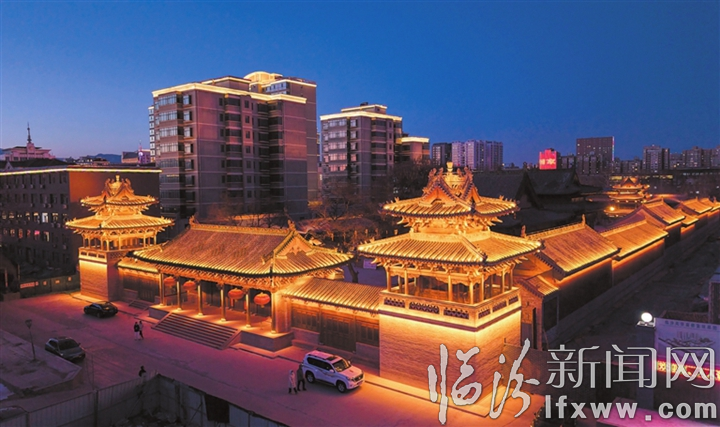 臨汾新聞網訊 2月11日,夜幕下的市區關帝廟文物保護和文旅建設項目(已修復完成區域)燈光璀璨,美不勝收。我市堅持“修舊如舊”,高標準、最大限度還原關帝廟的歷史原貌,賦予臨汾城市文化記憶,成為市區一道靚麗的風景線。