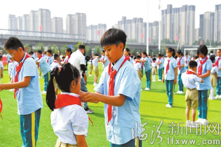 圖③為臨汾一中第一附屬學校舉行少先隊新隊員入隊儀式。記者 魏華 攝