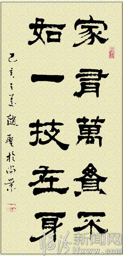 多年來(lái),袁隨圣一直比較關(guān)注各種書法活動(dòng),經(jīng)常會(huì)參觀書法展覽以拓寬自己的眼界。進(jìn)入不惑之年,袁隨圣偶然接觸到了清代“揚(yáng)州八怪”之首金農(nóng)的漆書,從此便情癡其中。