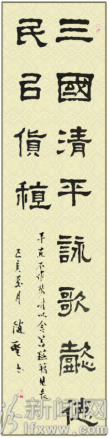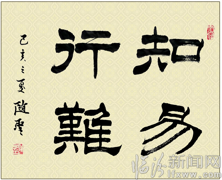 2008年,袁隨圣開始正式臨摹學(xué)習(xí)隸書。他先從《曹全碑》入手,然后陸續(xù)學(xué)習(xí)了《石門頌》《張遷碑》《西峽頌》《金剛經(jīng)》《石鼓文》《天發(fā)神讖碑》《乙瑛碑》。多年來(lái)他堅(jiān)持臨學(xué)篆書和隸書,讀帖臨帖,孜孜以求。
