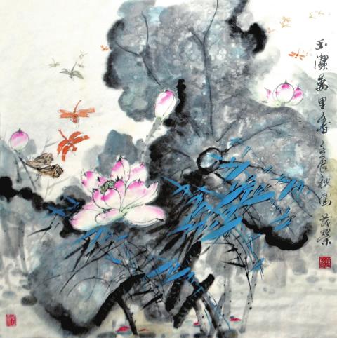 柴茂榮是位“創(chuàng)新”的畫家,他既注重傳統(tǒng),又不泥古不化。思維活躍,往往獨(dú)辟蹊徑,常出新意,令人叫絕。在作品《富貴結(jié)》中,放進(jìn)一臺(tái)電腦,這真是前無古人,大膽之至。他把古法、新意結(jié)合起來為筆墨當(dāng)隨時(shí)代做了典范。