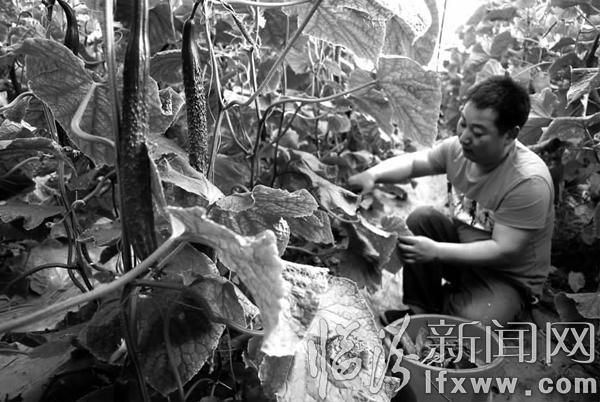 臨汾新聞網訊 近日,曲沃縣樂昌鎮安吉村智能溫室大棚里,村民宋艷斌正在給黃瓜剪葉、掐絲管理,以促進通風、增產。近年來,安吉村依托長期形成的蔬菜種植優勢,建起20多棟冬暖式日光溫室大棚,收到良好經濟收益。 (張榮)