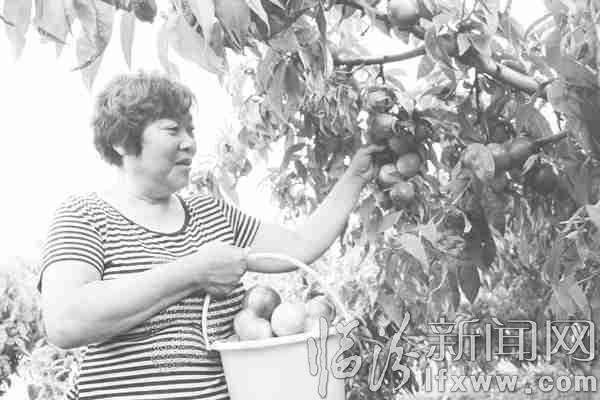 臨汾新聞網訊 近日,在曲沃縣楊談鄉楊談村,果農都親正在自家的桃園里采摘油桃。今年,她家種植了4畝油桃,畝產量達6000余斤,預計收入3萬元。