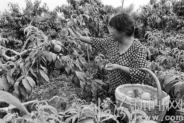 臨汾新聞網(wǎng)訊 7月6日,曲沃縣北董鄉(xiāng)營(yíng)里村村民朱新愛在自家豐收的桃園里忙著采摘成熟的桃子,她說:“今年桃子長(zhǎng)勢(shì)喜人,能穩(wěn)賺好幾萬元呢……”該村土質(zhì)肥沃、水源充足,產(chǎn)出的桃子以其果實(shí)大、色澤好、味道甜而一直深受廣大消費(fèi)者青睞。(張榮)