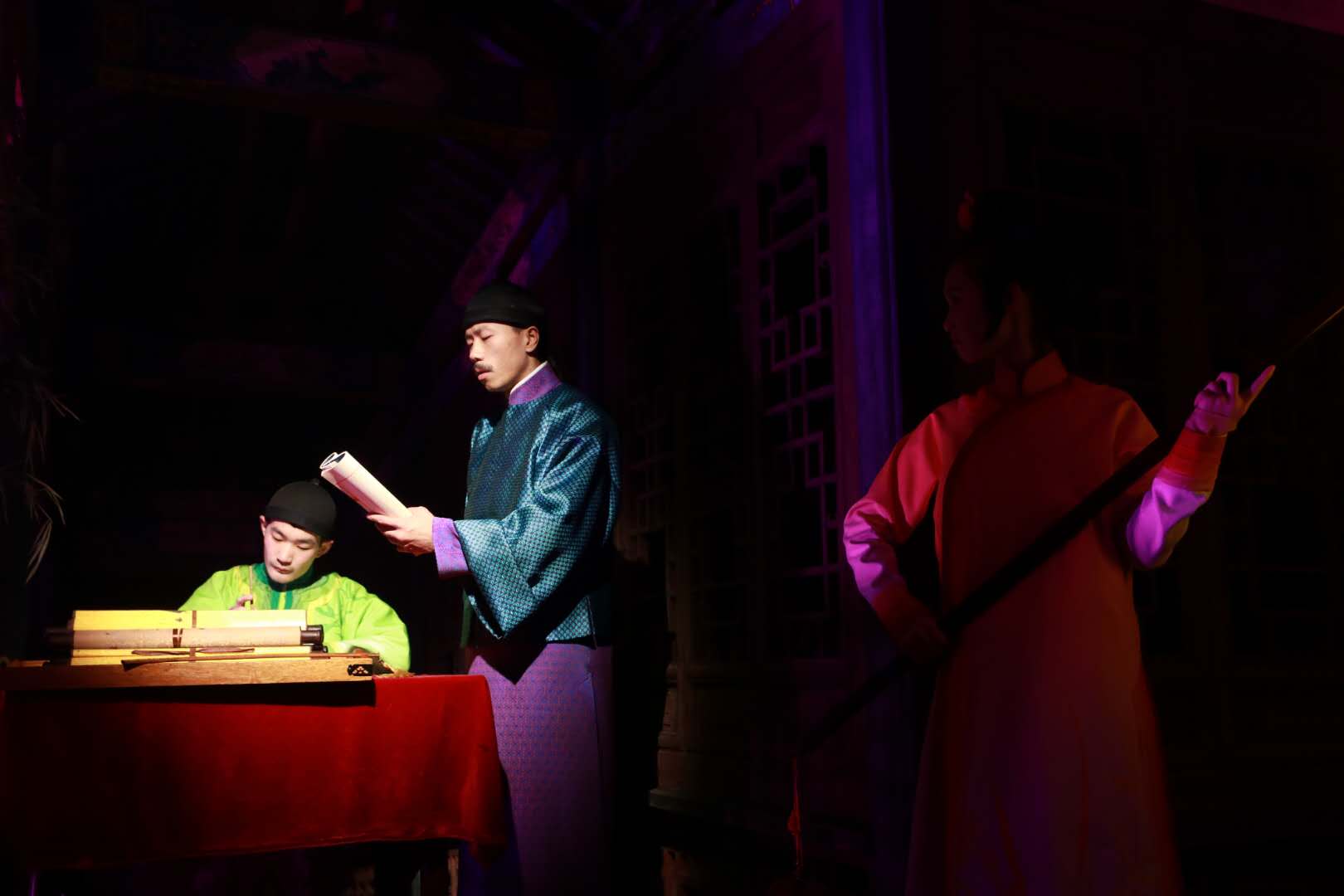 "昨晚的實景演出,王夫人被封一品誥命夫人那場最感人,主演王夫人的演員非常入戲,眼淚都落在舞臺木架上,真情流露,情景交融,仿佛穿越到那個時代。"