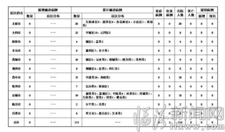 山西日報記者秦洋報道:2020年3月1日0時至24時,山西省無新增新型冠狀病毒肺炎確診病例,累計報告確診病例133例。其中: