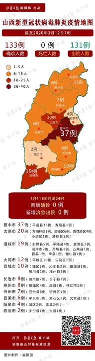 山西日?qǐng)?bào)記者秦洋報(bào)道:2020年3月11日0時(shí)至24時(shí),山西省無(wú)新增新型冠狀病毒肺炎確診病例,累計(jì)報(bào)告確診病例133例。無(wú)新增治愈出院病例,累計(jì)治愈出院131例。