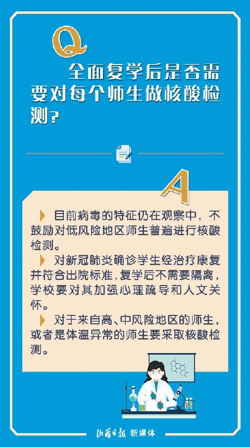 為進(jìn)一步做好教育系統(tǒng)全學(xué)段全面復(fù)學(xué)復(fù)課和疫情防控工作,近日,教育部召開(kāi)學(xué)校疫情防控專(zhuān)家咨詢(xún)視頻會(huì)。來(lái)自北京大學(xué)、中國(guó)疾控中心、北京中醫(yī)藥大學(xué)等院校機(jī)構(gòu)的8位專(zhuān)家接受咨詢(xún),就返校復(fù)學(xué)防疫工作事項(xiàng)給出了最新的建議。
