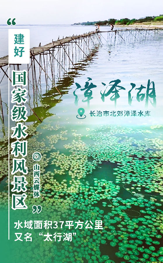 漳澤湖水利風景區,是依托漳澤水庫而建。漳澤水庫是海河流域漳衛南運河水系濁漳河南源干流上的一座以工業、城市供水、灌溉、防洪為主,兼顧旅游等綜合利用的調節水庫,是山西省第三大水庫。其環湖區為山西省第一個國家城市濕地公園,有黑鶴、大天鵝、白琵鷺等168種鳥類棲息。