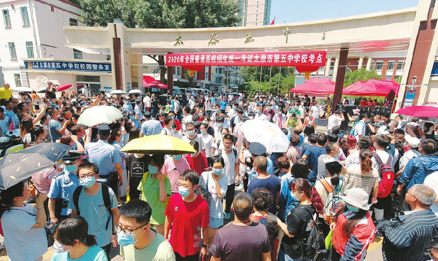7月7日,2020年全國高考拉開帷幕。圖為全國普通高等學校統一招生考試太原五中考點,首科考試結束后,考生滿懷信心走出考場。 本報記者李兆民攝