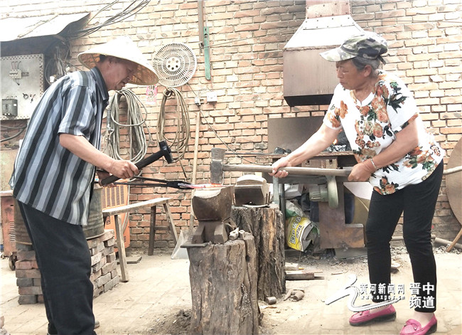 黃河新聞網晉中訊(記者 王俊青 段紅莉)炎炎夏日,烈日當空。7月10日,在一個普通的農家小院里,65歲的程遠亮正揮舞著鐵錘,一錘一錘專注地砸在剛從爐火中取出的鐵塊上,錘頭和鐵塊撞擊的聲音清脆悅耳??吹接浾邅碓L,大汗淋漓的程遠亮急忙放下手中的鉗子和錘子,摘下草帽用手擦了擦額頭的汗珠。