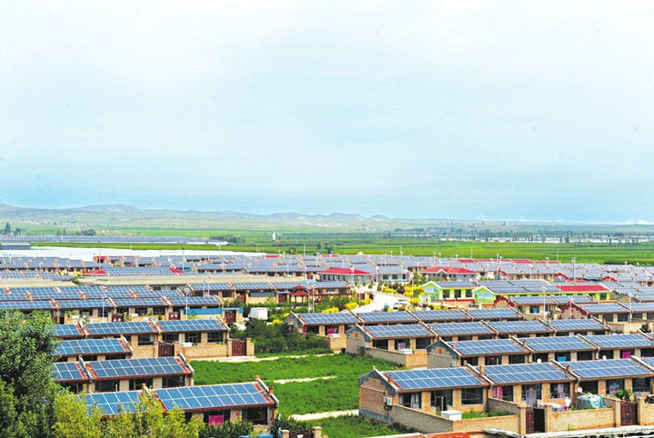 陽高縣古城鎮道賢村居民屋頂光伏發電項目全景。于宏攝
