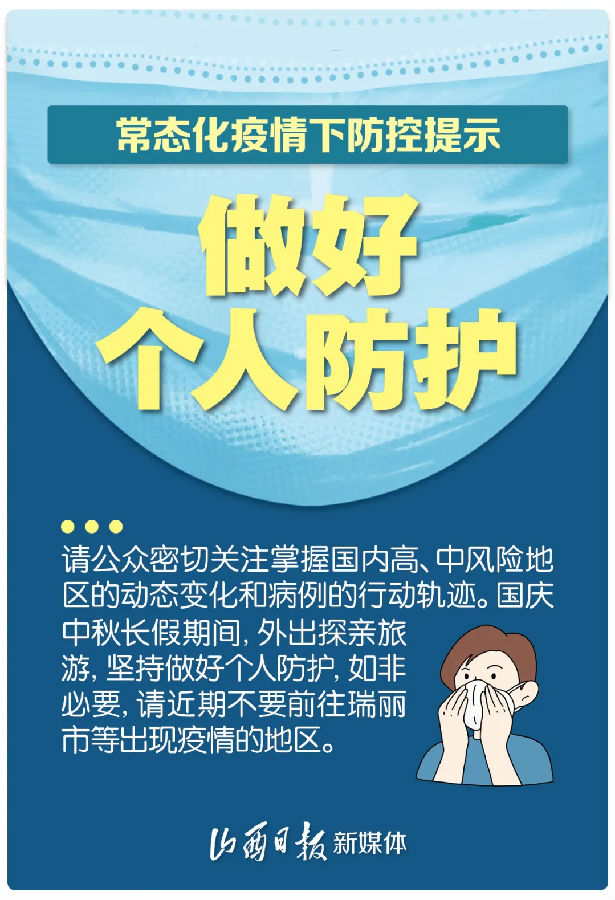 省疫情防控辦公室發(fā)布提示,國(guó)慶中秋即將來(lái)臨,朋友們?cè)谕獬鲇瓮娴耐瑫r(shí) ,要注意疫情防控,遵守法律法規(guī),尊重社會(huì)公德,維護(hù)國(guó)家利益和社會(huì)公共利益,共同創(chuàng)建文明、健康、綠色旅游新風(fēng)尚。