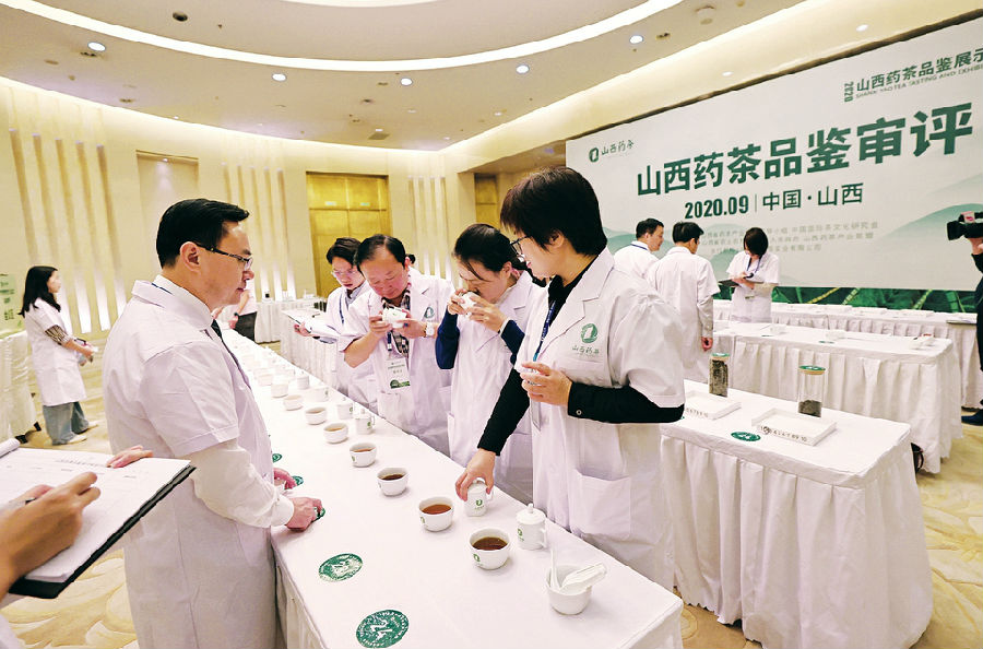 山西藥茶品鑒審評專家評委們正在品鑒藥茶。 本報記者史曉波攝