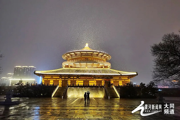 11月19日,立冬已過,2020年大同市初冬的第一場雪,夾雜著溫柔的雨點就這樣飄飄灑灑落在這座古城。攝影/穆帥
