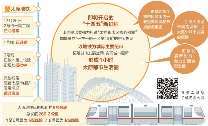 即將開啟的“十四五”新征程,山西提出要強力打造“太原都市區核心引擎”、加快形成“一主一副一區多組團”的空間格局,以地鐵為城際主要紐帶,拓展城市發展空間,實現城市更新,形成1小時太原都市生活圈。