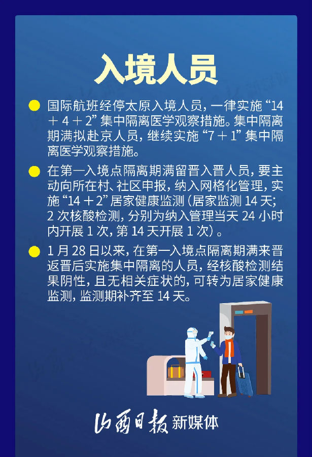 為進一步貫徹落實國家疫情防控最新政策要求,統(tǒng)籌做好全省春節(jié)期間疫情防控和群眾返鄉(xiāng)出行保障工作,科學精準開展春節(jié)期間來晉返晉重點人員服務管理工作,2月3日,山西省新冠肺炎疫情防控工作領導小組發(fā)布《關于做好來晉返晉重點人員及春節(jié)期間返鄉(xiāng)群眾服務管理工作的通知》。