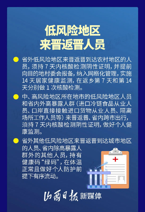 通知強調,各市、縣不得在未發(fā)現(xiàn)疫情苗頭、不開展風險研判的情況下“層層加碼”和“一刀切”。本通知中第四類人員(低風險地區(qū)來晉返晉人員)管控政策即日起生效,至2021年3月8日止。如此前規(guī)定與本通知有不一致之處,以本通知為準。