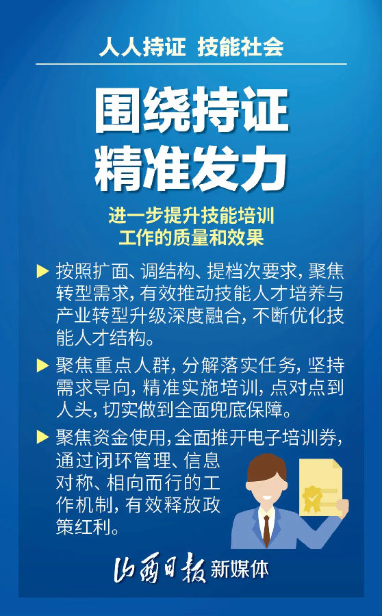 樓陽生強調,要深入貫徹落實習近平總書記視察山西重要講話重要指示和關于技能人才工作的重要論述,堅持以人民為中心的發展思想,深入推進“人人持證、技能社會”全民技能提升工程,為實現高質量轉型發展提供知識型、技能型、創新型勞動者大軍。