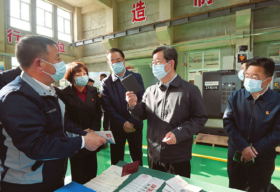 四月十九日,省委書記樓陽生深入臨汾市調研,在霍州市技工學校了解“人人持證、技能社會”建設情況。本報記者史曉波攝