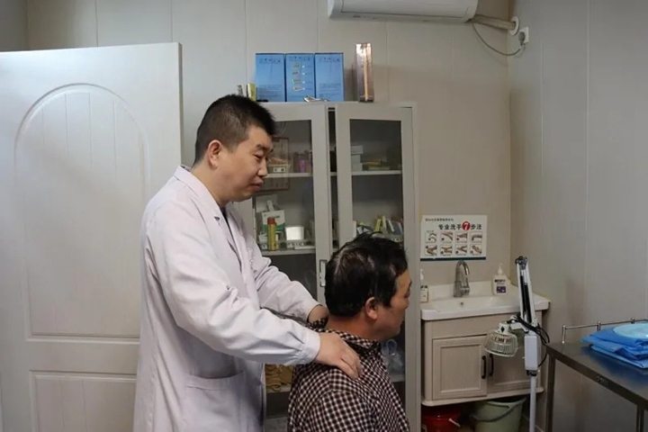 圖為鳳臺社區智慧康養服務中心醫生正在為社區老人按摩。