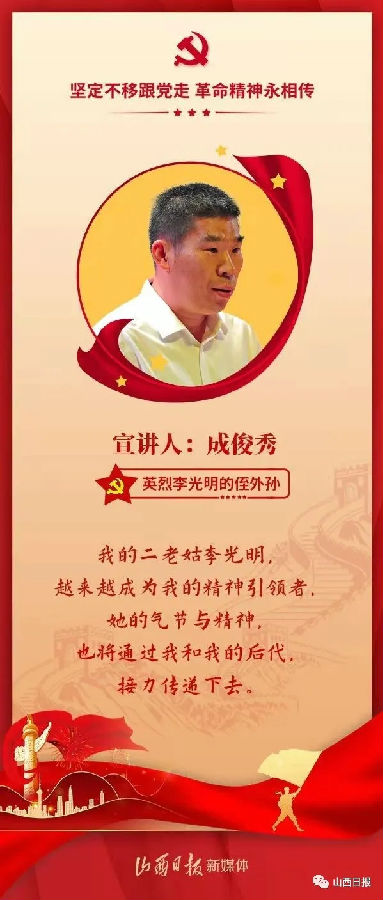 7月6日和7日,按照省委黨史學習教育領導小組辦公室安排,山西省英烈英模家屬宣講團先后走進大同市和朔州市,開展“堅定不移跟黨走,革命精神永相傳”主題宣講報告會。在5位英烈英模家屬的深情講述中,重溫那段可歌可泣的歲月,感悟那種永不磨滅的精神。