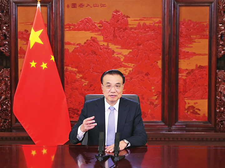 李克強表示,中國政府高度重視能源高質量發展和應對氣候變化。習近平主席宣布,中國力爭于2030年前二氧化碳排放達到峰值、2060年前實現碳中和。近年來,中國實施污染防治攻堅戰,著力調整優化能源、產業結構,狠抓節能減排,生態環境質量不斷改善。前不久,全球規模最大的碳排放權交易市場在中國正式上線。