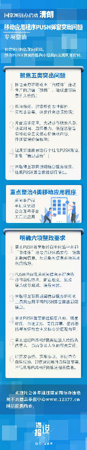 海報(bào) | 國家網(wǎng)信辦啟動清朗·移動應(yīng)用程序PUSH彈窗突出問題專項(xiàng)整治