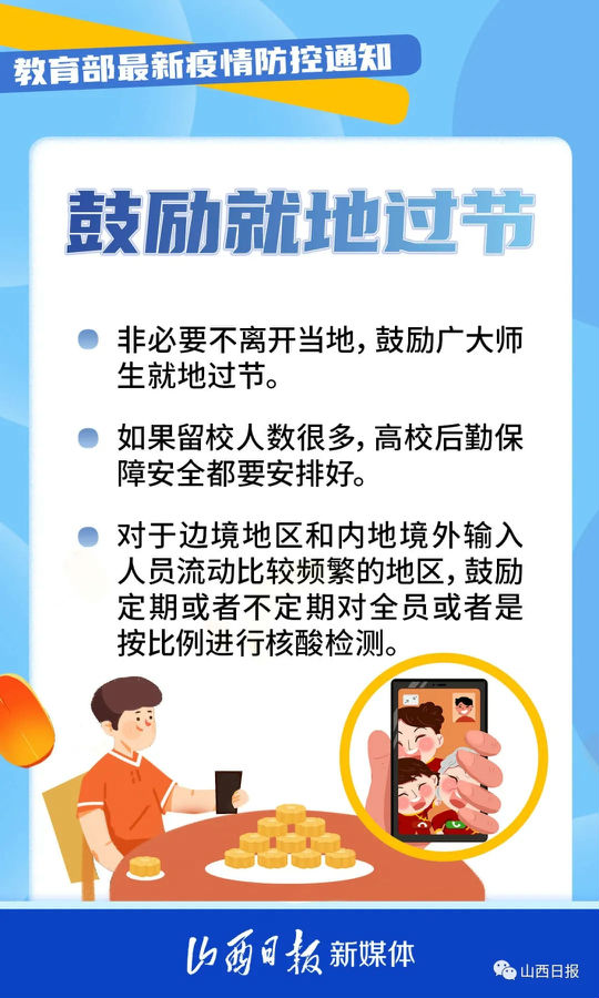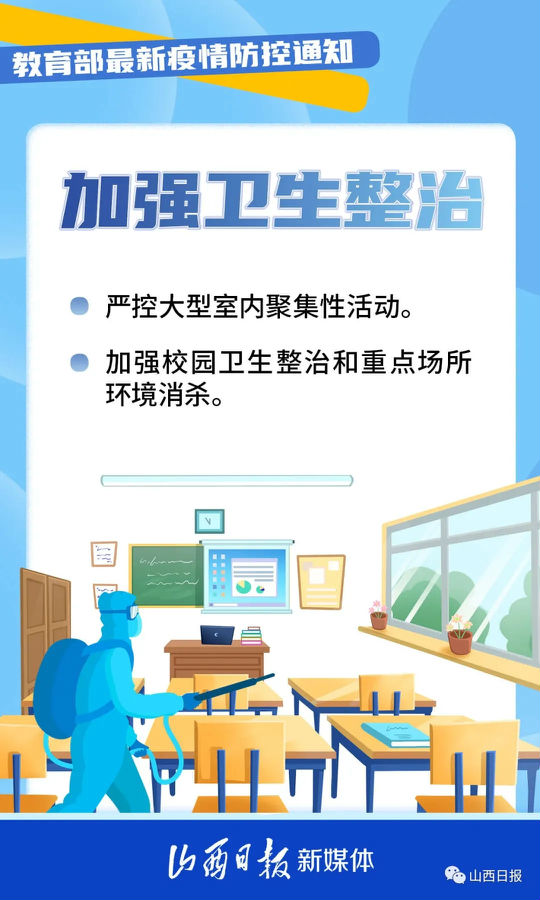 9月14日,教育部印發通知部署進一步從嚴從緊做好中秋國慶假期和秋季學期疫情防控工作。通知要求,各地教育部門和學校要從嚴落實校園疫情防控措施。