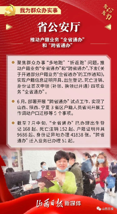 黨史學(xué)習(xí)教育開展以來,山西省各單位堅持積極開展“我為群眾辦實事”活動,把黨史學(xué)習(xí)成果轉(zhuǎn)化為為群眾辦實事、解難題的具體行動,通過一系列貼心服務(wù)、務(wù)實舉措、有效機(jī)制,及時解決民之所需、民之所愿,用實實在在的舉措回應(yīng)了人民群眾的心中期待。