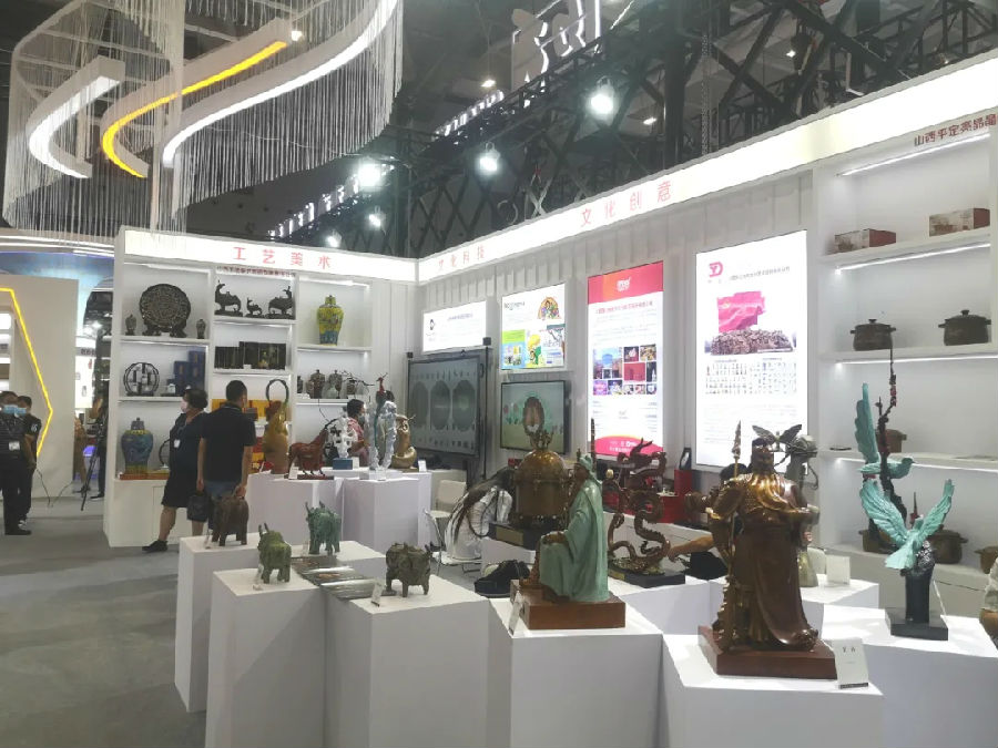 有聲圖書、3D文物展示、山西原創動漫IP、青銅雕塑,還有琺華器、平遙推光漆器、澄泥硯等各類非遺技藝及產品展示......