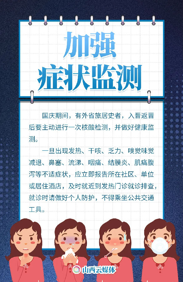 10月3日,新疆伊犁州霍爾果斯市在三天1次常規(guī)核酸檢測(cè)中,發(fā)現(xiàn)2例新冠肺炎無(wú)癥狀感染者。為鞏固我省來(lái)之不易的疫情防控成果,10月4日,山西省疫情防控辦發(fā)布緊急提示。