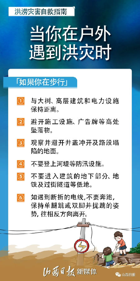 汛期已至,山西多地連續暴雨,部分地區遭受洪水災害。發生洪水時如何保護好自己的人身安全? 這份洪水防范自救手冊,請收好!