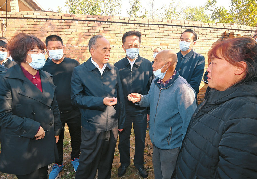 十月十七日,省委書記林武在霍州市師莊鄉馮南垣村災害中農房坍塌現場,了解群眾安置情況及重建規劃。本報記者李聯軍攝